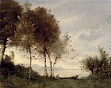Boatman On A River Landscape by Paul Desire Trouillebert