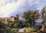 AnExtensive River Landscape With Travellers On A Path And A Castle In Ruins In The Distance by Barend Cornelis Koekkoek