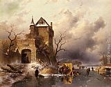 A Winter Landscape with Figures near a Castle by Charles Henri Joseph Leickert
