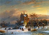 Skaters Near A Castle by Charles Henri Joseph Leickert