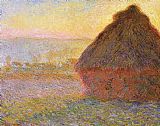 Haystacks, sunset by Claude Monet