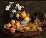 Flowers & Fruit on a Table 1865 by Henri Fantin-Latour