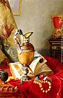 A Still Life With Urns And Illuminated Manuscript On A Draped Table by Blaise Alexandre Desgoffe