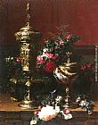 A Still Life With A German Cup, A Nautilus Cup, A Goblet An Cut Flowers On A Table by Jean-Baptiste Robie