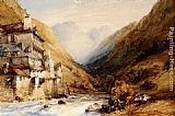 A Mountain Valley With A Peasant And Cattle Passing Along A Stream by Johann Bernard Klombeck