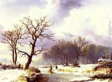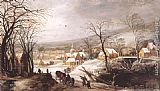 A Winter Landscape with Skaters near a Village by Charles van den Eycken