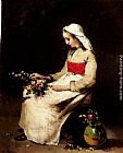A Young Girl Arranging A Bouquet by Henry Wallis