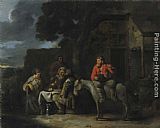 An Extensive Summer Landscape with Peasants by a Farm, A Village in the Distance by Jan Evert Morel