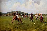 Playing Polo At Cowdray Park, West Sussex by Lionel Edwards