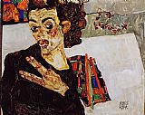 Self Portrait with Black Vase and Spread Fingers by Egon Schiele
