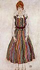 Portrait of Edith Schiele in a Striped Dress by Egon Schiele