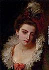 Portrait Of A Lady With A Feathered Hat by Gustave Jean Jacquet