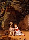 Portrait Of A Little Boy Placing A Coral Necklace On A Dog, Both Seated In A Parkland Setting by Martin Drolling