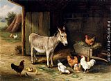 Donkey, Hens and Chickens in a Barn by Edgar Hunt