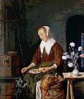 Woman Eating and Feeding her Cat by Gabriel Metsu