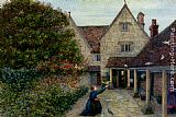 Feeding The Doves At Kelmscott Manor, Oxfordshire by Maria Spartali Stillman