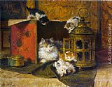 A Mother Cat Watching Her Kittens Playing by Henriette Ronner-Knip