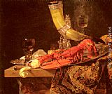 Still Life with the Drinking-Horn of the Saint Sebastian Archers' Guild, Lobster and Glasses by Willem Kalf