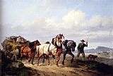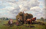 Horses Pulling A Hay Wagon In A Landscape by Wouter Verschuur