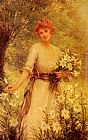 A Young Girl With A Basket Of Flowers by Conrad Freyberg