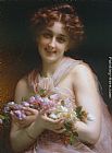 A Young Beauty holding a Bouquet of Flowers by Fritz Zuber-Buhler