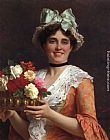 A Still Life with a Basket of Flowers, Oranges and a Fan on a Table by Antoine Vollon
