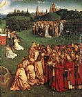 The Ghent Altarpiece Adoration of the Lamb [detail right] by Jan van Eyck