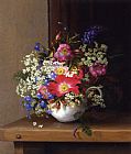 Still Life with Dog Roses_ Larkspur and Bell Flowers in a White Cup by Adelheid Dietrich