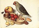 Still Life With Peaches, Plums, Strawberries And Tropical Fruits In An Architectural Miche by George Lance