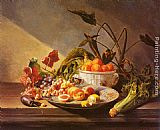 A Still Life with Flowers and Fruit by George Jacobus Johannes Van