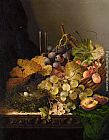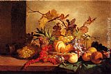 A Still Life Of A Basket Of Fruit And Roses by Johan Laurentz Jensen