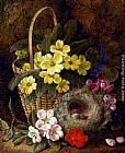 Still Life with Primroses, Violas, cherry Blossom and Geraniums and a Thrush's Nest by George Clare