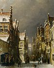 Figures in the Snow Covered Streets of a Dutch Town by Pieter Gerard Vertin