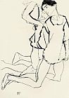 Two Kneeling Figures Parallelogram by Egon Schiele