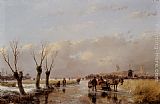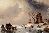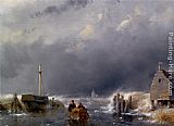 Figures Loading A Horse-Drawn Cart On The Ice by Charles Henri Joseph Leickert