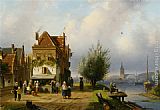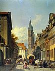 A Town View with Figures by a Market Street Stall by Charles Henri Joseph Leickert