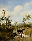 A Forest View with Figures by a Stream by Hendrikus van den Sande Bakhuyzen