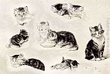A Study Of Cats Drinking, Sleeping And Playing by Henriette Ronner-Knip
