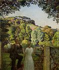 Midge Bruford and Her Fiance at Chywoone Hill Newlyn by Harold Harvey