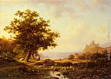 An Extensive River Landscape With A Castle On A Hill Beyond by Frederik Marianus Kruseman