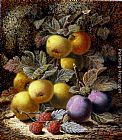 Still Life with Apples, Plums and Raspberries on a Mossy Bank by Oliver Clare