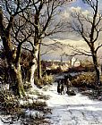 Figures On A Snowy Road by Johannes Hermanus Koekkoek