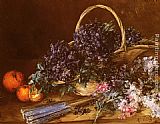 A Still Life with a Basket of Flowers, Oranges and a Fan on a Table by Antoine Vollon