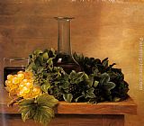 A Still Life with Grapes and Wine on a Table by Johan Laurentz Jensen