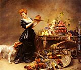 Allegorie De L'Automne La Duchesse De Gramont Presente Un Etalage De Fruits Et De Giber by Madeleine Jeanne Lemaire