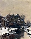 A Canal Scene In Winter by Johan Hendrik Van Mastenbroek