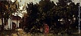 Mother and Daughter Sewing on a Patio by Manuel Garcia y Rodriguez
