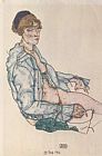Sitting woman with blue hair ribbon by Egon Schiele