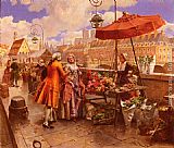 The Flower-Seller Along The Seine by Henri Victor Lesur