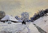 A Cart on the Snow Covered Road with Saint-Simeon Farm by Claude Monet